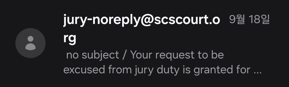 지난 9월초 너무나도 당황스러운 배심원 소환장을 받고 온라인으로 거절의사를 밝혔잖아요.