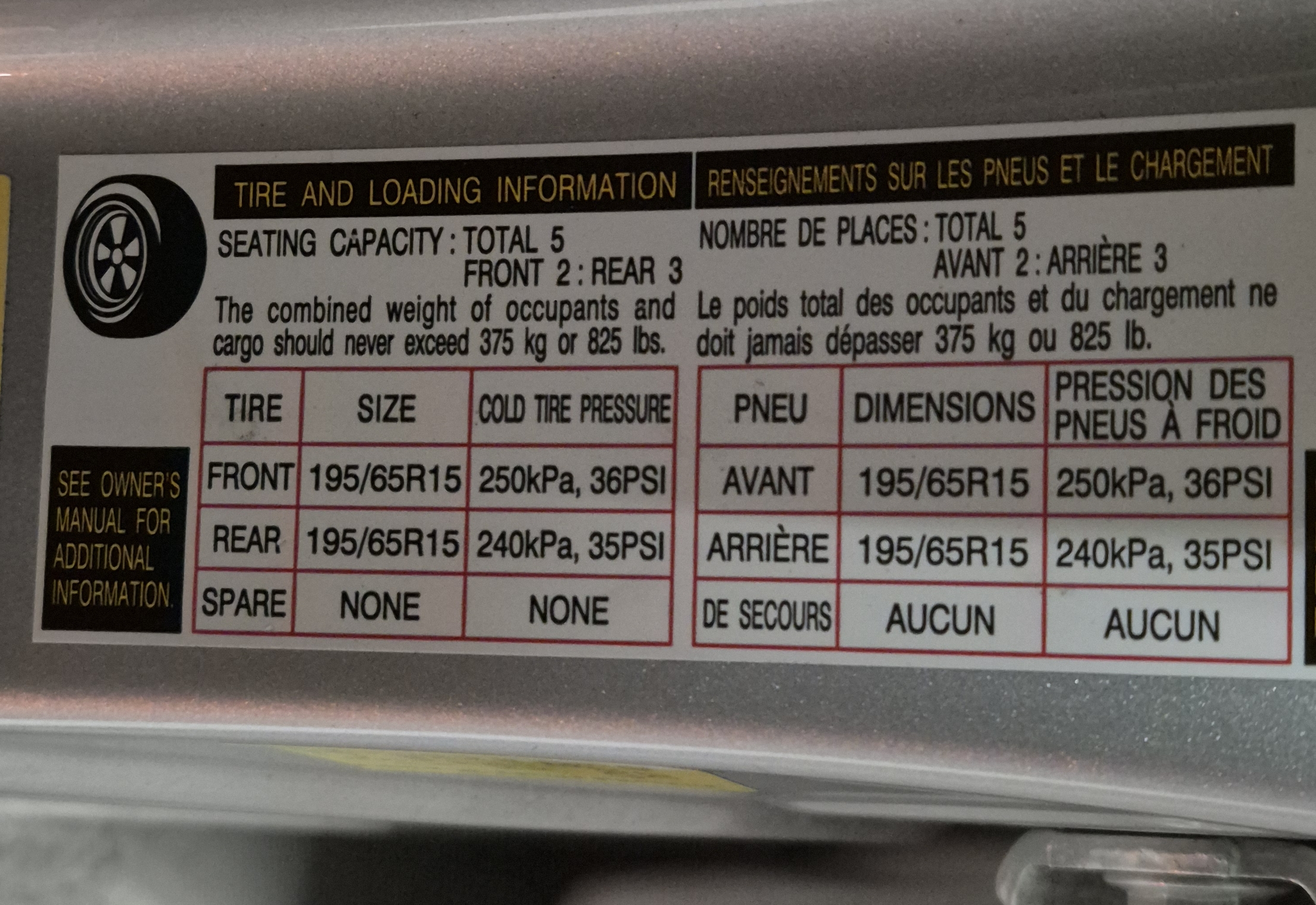 제차의 타이어사이즈는 195/65R15,