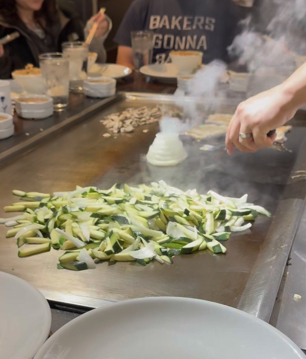 요리사가 테이블에서 직접 철판에 요리해 주고 퍼포먼스도 해주는 레스토랑으로 유명하더라.