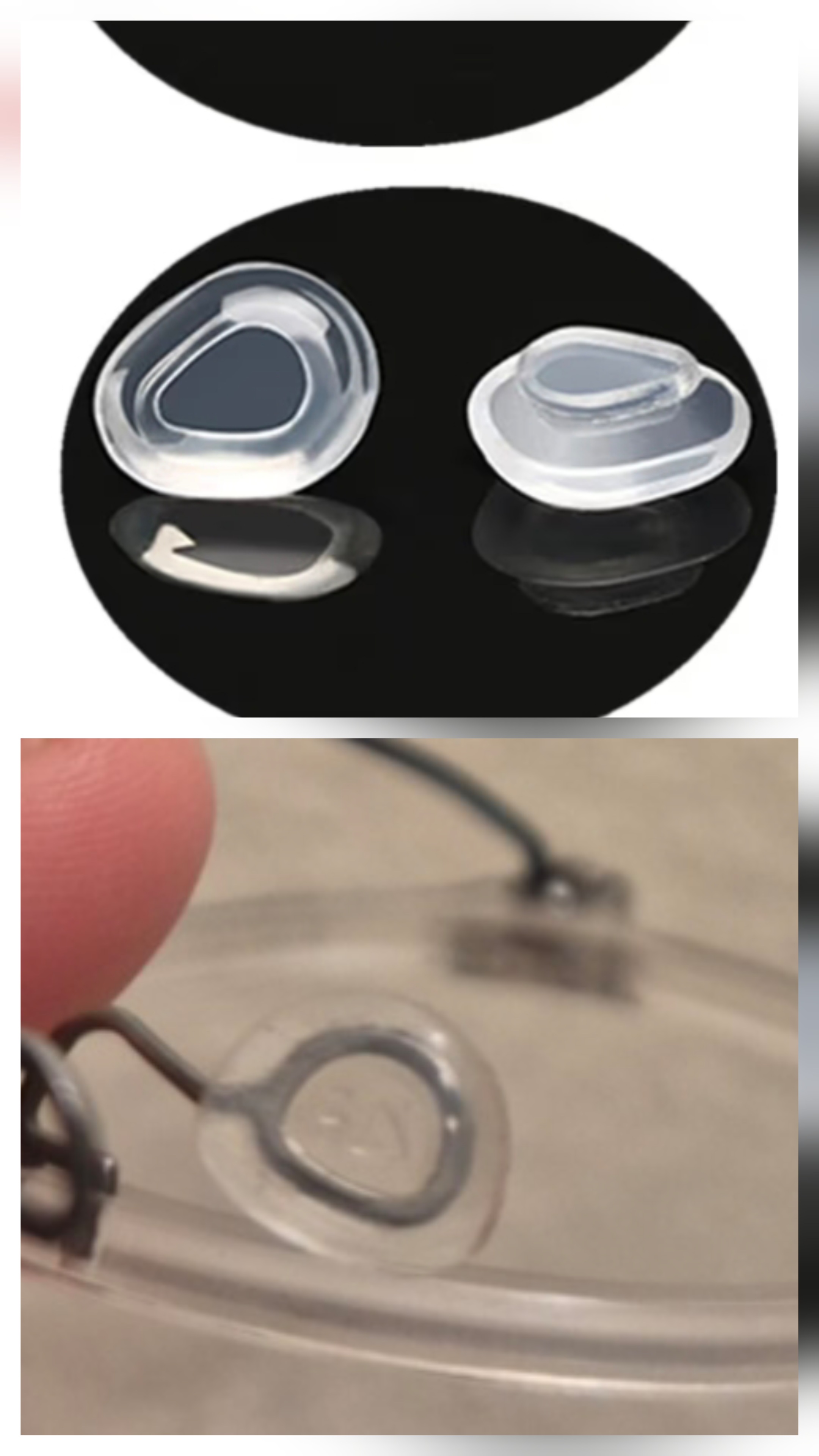 요즘은 티타늄재질의 안경테가 많아지고 코받침도 이렇게 실리콘 코받침으로 세팅 된 경우가 많은데